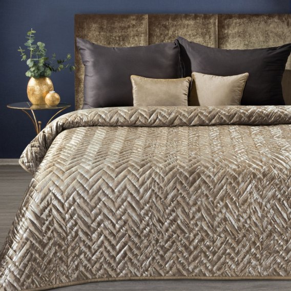 Samt-Tagesdecke mit Goldnähten, Breite: 170 cm, Länge: 210 cm, Farbe: braun, Gewicht: 210+75+120 GSM, Zusammensetzung: 100% Polyester