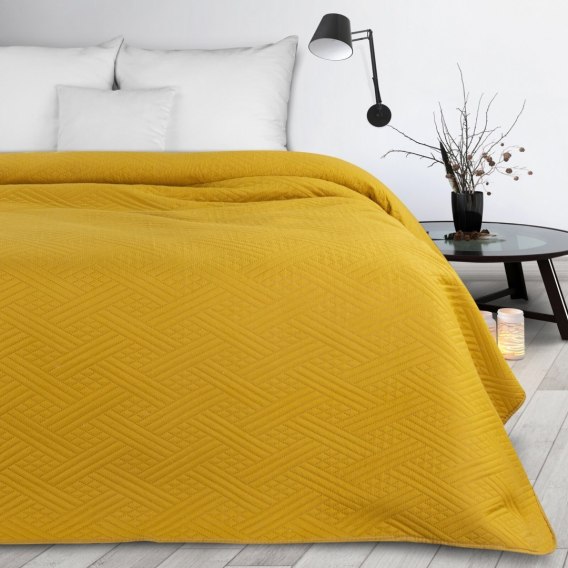 Einfarbige Tagesdecke. hergestellt im Heißpressverfahren Breite: 170 cm. Länge: 210 cm. Farbe: senffarbe. Gewicht: 70+120+70 GSM. Material: 100% Polyester