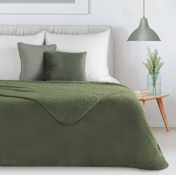 Weiche, doppelseitige Flanodecke aus Lammfellgewebe, Breite: 70 cm, Länge: 160 cm, Farbe: oliv, Gewicht: 170+170 GSM, Zusammensetzung: 100% Polyester