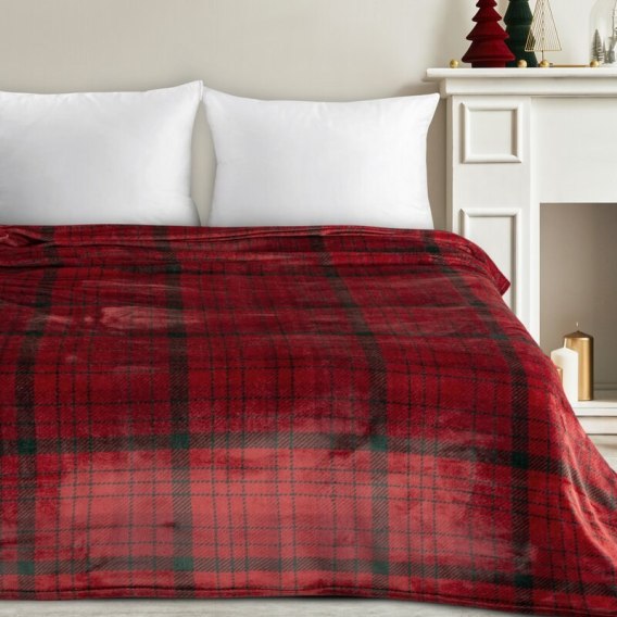 Weihnachtsdecke mit Karomuster aus Flanostoff, Breite: 150 cm, Länge: 200 cm, Farbe: rot, Zusammensetzung: 100 % Polyester