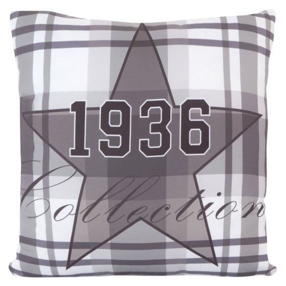 Kissenbezug mit Aufdruck w kratę i napisami Breite: 40 cm. Länge: 40 cm. Farbe: grau. Material: 100% Polyester