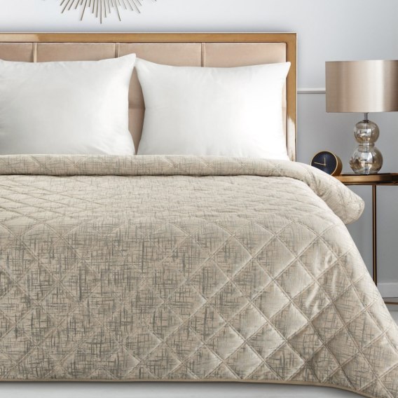 Tagesdecke aus Samt, hergestellt im „Hot Press"-Verfahren mit Foliendruck, Breite: 200 cm, Länge: 220 cm, Farbe: creme, Gewicht: 210 g/m², Zusammensetzung: 100 % Polyester