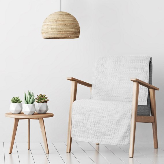 Gesteppte. einfarbige Tagesdecke mit Hot-Press Verfahren hergstellt Farbe: weiß. Gewicht:: 70+120+70 GSM. Material: 100% Polyester