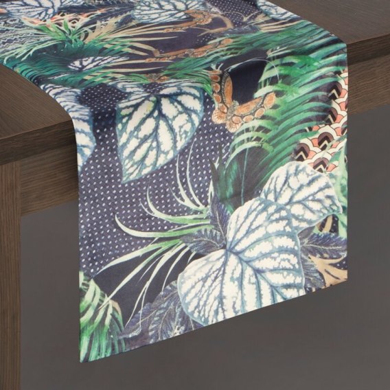 Tischdecke Velvet mit Aufdruck Breite: 35 cm. Länge: 180 cm. Farbe: schwarz. Gewicht:: 260 GSM. Material: 100% Polyester