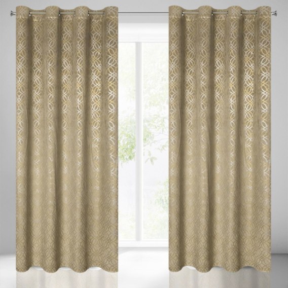 Vorhang Velvet z champagnerm i silberm Aufdruck Breite: 140 cm. Länge: 250 cm. Farbe: beige. Gewicht:: 200 GSM. Material: 100% Polyester