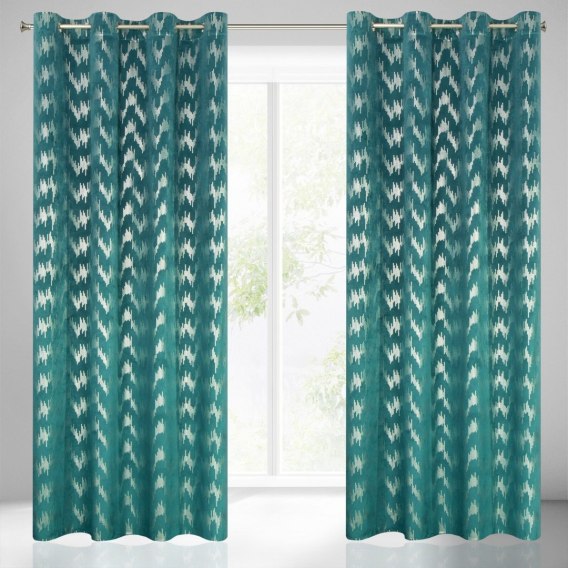 Velours Vorhang mit silbernem Aufdruck Breite: 140 cm. Länge: 250 cm. Farbe: türkis. Gewicht:: 200 GSM. Material: 100% Polyester