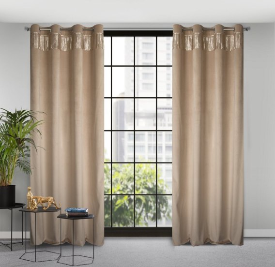 Vorhang Velvet einfarbig z ozdobną taśmą z cekinami Breite: 140 cm. Länge: 250 cm. Farbe: beige. Gewicht:: 290 GSM. Material: 100% Polyester