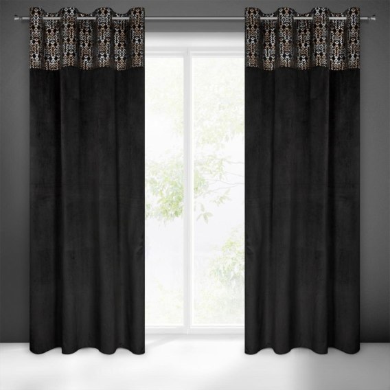 Vorhang Velvet ze goldm i silberm Aufdruck Breite: 140 cm. Länge: 250 cm. Farbe: schwarz. Gewicht:: 200 GSM. Material: 100% Polyester