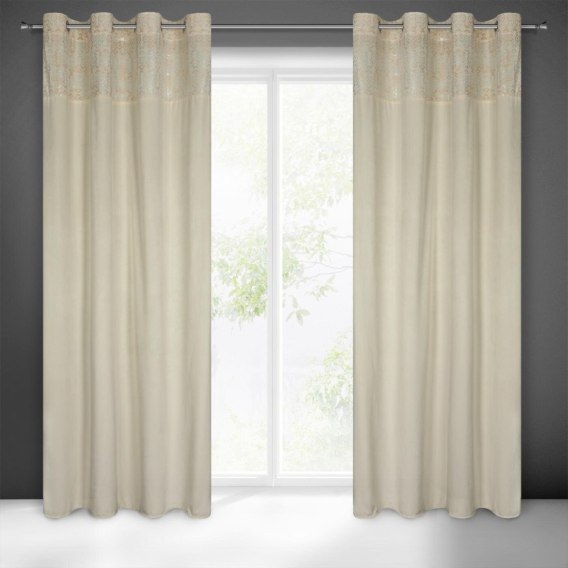 Vorhang Velvet ze goldm i silberm Aufdruck Breite: 140 cm. Länge: 250 cm. Farbe: creme. Gewicht:: 200 GSM. Material: 100% Polyester