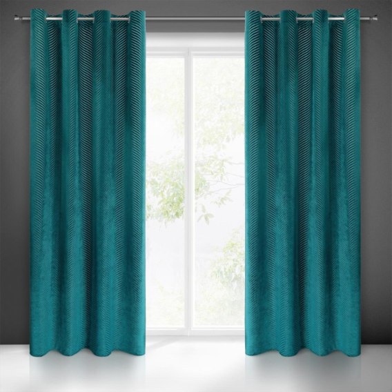 Vorhang z welwetu żakardowego. błyszcząca z motywem geometrycznym Breite: 140 cm. Länge: 250 cm. Farbe: dunkeltürkis. Gewicht:: 390 GSM. Material: 100% Polyester
