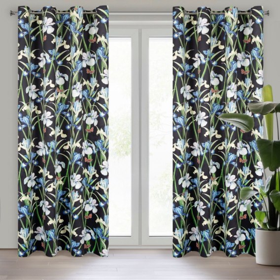 Vorhang MAJA schwarz blau 140x250 Ösen