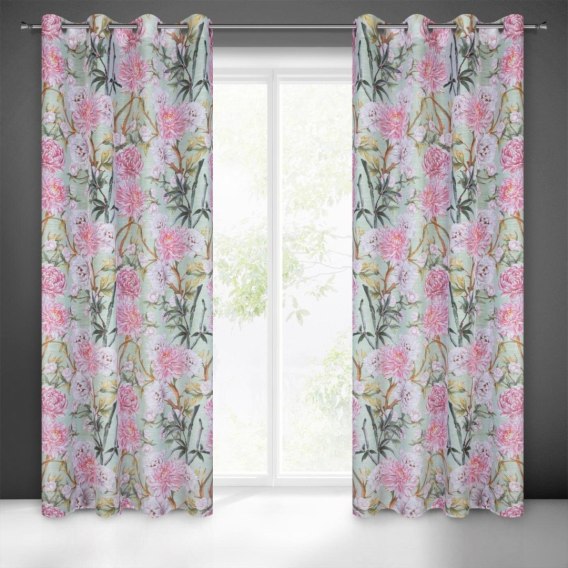 Vorhang z etaminymit Blumenmuster Breite: 140 cm. Länge: 250 cm. Farbe: minze. Gewicht:: 80 GSM. Material: 100% Polyester