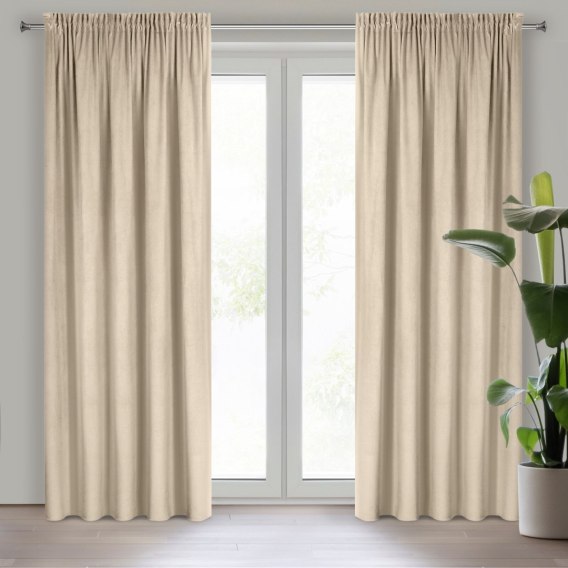 Einfarbiger, dekorativer, eleganter Vorhang Breite: 140 cm. Länge: 300 cm. Farbe: creme. Gewicht:: 215 GSM. Material: 100% Polyester
