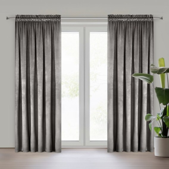 Einfarbiger, dekorativer, eleganter Vorhang Breite: 140 cm. Länge: 300 cm. Farbe: stahl. Gewicht:: 215 GSM. Material: 100% Polyester