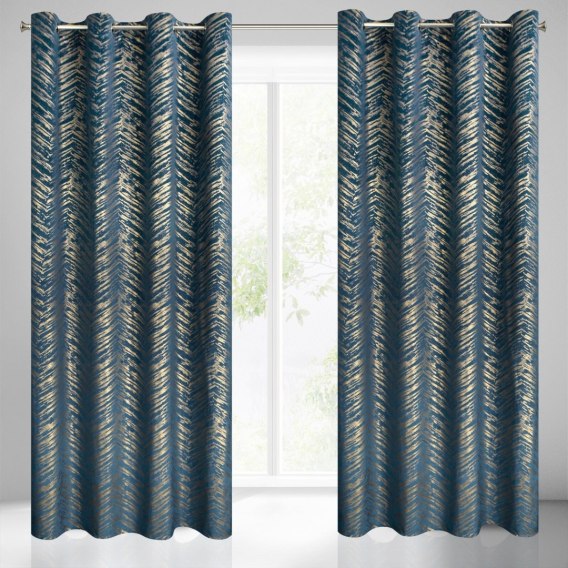 Vorhang Velvetmit goldenem Aufdruck Breite: 140 cm. Länge: 250 cm. Farbe: dunkelblau. Gewicht:: 200 GSM. Material: 100% Polyester